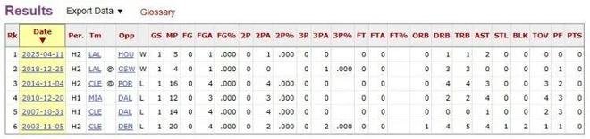 上一次老詹半场0分还要追溯到2025年4月12日。