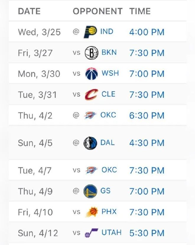 除了2战雷霆,客战骑士、太阳,主场战勇士,其余都是摆烂的鱼腩球队。