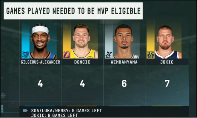 下图是4人要竞选MVP还要打的比赛场次