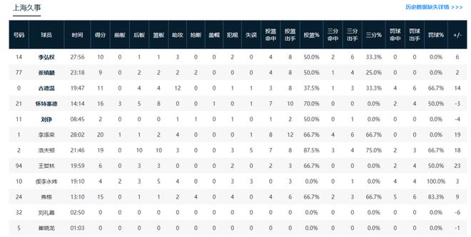 此后,上海男篮外线彻底爆发,古德温、李弘权、李添荣接连三分命中迅速拉开了分差,其中李添荣三分3投3中,首节替补登场5分钟便砍下11分,帮助上海男篮35-19领先结束首节比赛。