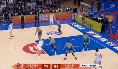 比赛开始后,双方的转换节奏都很快,天津男篮靠着更流畅的进攻很快建立起7-2的领先优势。卢伟立马做出调整,用洛夫顿换下怀特塞德,希望利用外线威胁和更多的传导来拉扯对方防守阵型,这个换人的效果立竿见影,上海男篮连续打出空切配合,追至6-7打停对手。