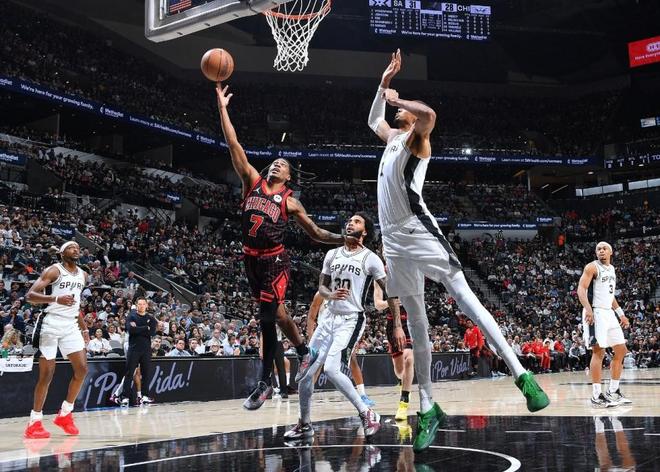 次节比赛,马刺进攻火力升级本场首次单节35分,还限制公牛本场首次单节不足20分。前3分钟双方均是只得到2分,马刺连得5分,公牛一波10-5攻势追到差1分。马刺内外开花一波8-0攻势追分,公牛略微追到差8分,马刺在文班亚马引领下打出一波11-2攻势拉开比分。马刺单节35-19净胜16分,上半场结束马刺扩大64-47领先公牛。前两节比赛,公牛三分24中7,米勒14+5与吉迪9+4+5;马刺三分17中6,文班亚马15中8得到21+12+2+2帽与卡斯尔13+5+5。