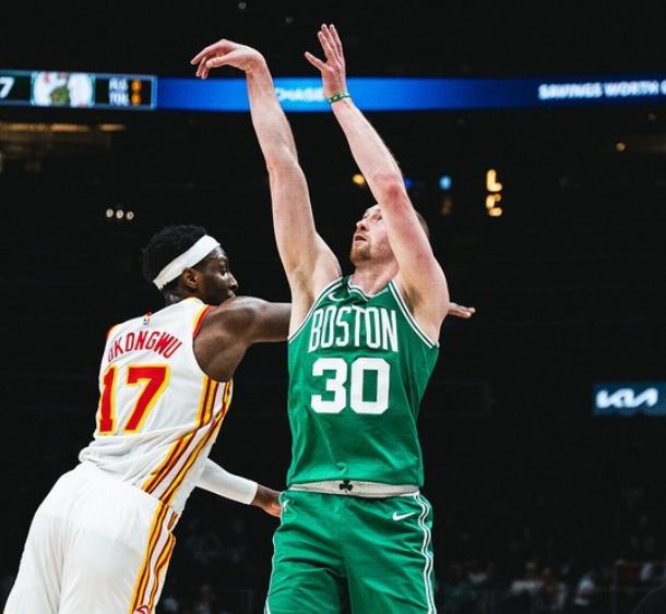 这一个比赛日,凯尔特人奔赴亚特兰大州立农业球馆,客场挑战老鹰,本场比赛杰伦布朗在塔图姆缺阵的情况下被锁死,杰伦约翰逊则率领老鹰打出了流畅的整体进攻,第三节一波流建立起了两位数的领先优势,最终以112-102复仇凯尔特人。