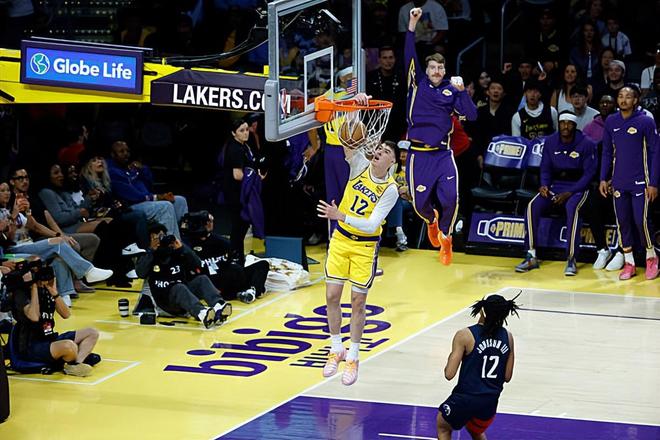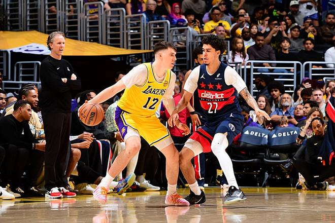 本场比赛中,湖人的先发锋线新星杰克-拉拉维亚(Jake LaRavia)的表现也还算不错。拉拉维亚全场出场27分54秒,投篮3中2,得到了4分3篮板2助攻3抢断1盖帽的数据,还有3次犯规,正负值则是达到了全场次高的+23。拉拉维亚在进攻端没有什么太多的输出,也没有得到什么太多的出手机会,因此表现非常一般。不过他在防守端的表现其实是非常出色的,他也是将自己超强的防守积极性和活力发挥了出来,在防守端的效果相当不错。拉拉维亚的出场时间并不多,但是他在场上时球队的整体局面也是值得肯定的,这也能够体现在他超高的正负值上。拉拉维亚在本场比赛中也算是发挥出了自己的价值,并且为球队的胜利做出了自己的贡献。