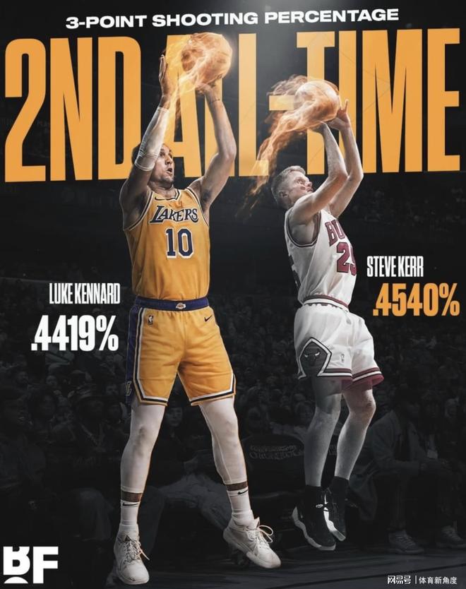 就目前的情况而言,湖人队三分球投得最准的球员依旧是肯纳德,他的三分命中率高达48.4%,这一数据在全联盟中位居榜首。而且,肯纳德在NBA历史上也是一位三分投射的佼佼者,其职业生涯三分命中率高达44.2%,排在历史第二位。在三分球命中率这一关键数据维度上,仅有史蒂夫·科尔以45.4%的卓越表现略胜一筹。