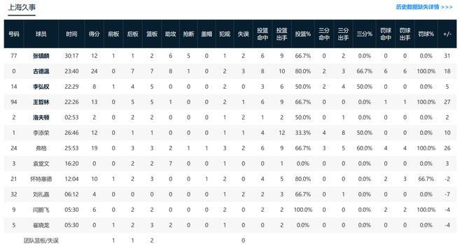 此后,李添荣连续两次三分出手命中,上海男篮进攻再次起势,一波14-3把分差拉开至两位数。半场结束,上海男篮56-43领先。