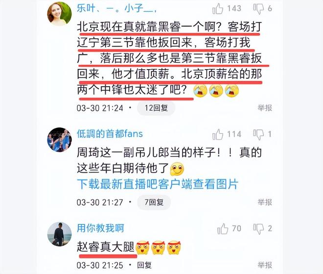 许利民说得很对,球迷完全认同他的评价,有人说“赵睿才值顶薪。北京顶薪给那两个中锋也太迷了吧?”赵睿对北京队真的太重要了,你们说呢?