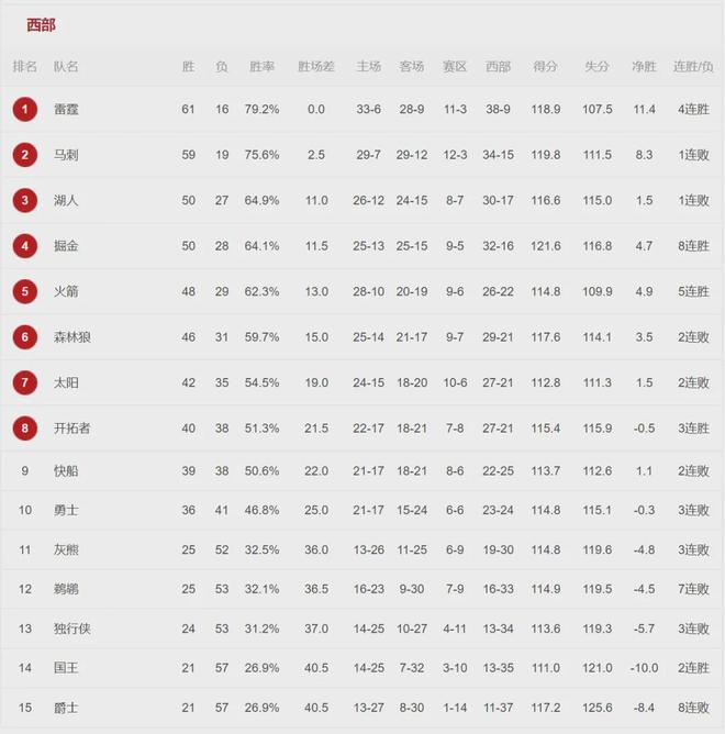 目前湖人50胜27负仍居西部第三,领先第四掘金0.5个胜场,领先第五火箭2个胜场,领先第六森林狼4个胜场,领先第七太阳8个胜场。湖人还剩5场比赛,肯定不会掉到附加赛区,最好的结果是保住第三,最坏的结果是沦为第六。