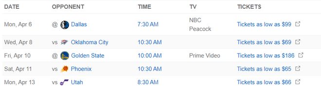 湖人还剩下五场比赛,季后赛附加赛将在4月15日开打,季后赛4月19日开打,东契奇与里夫斯最快也要三周的康复时间,也就是在4月26日左右才能复出,季后赛首轮可能都已经打完。