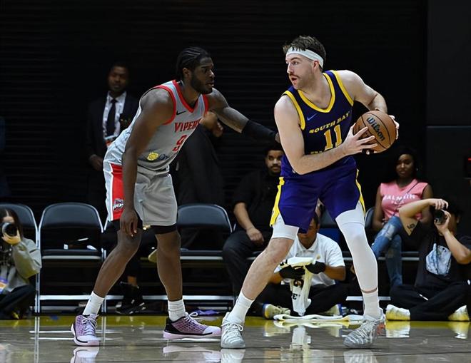 本场比赛中,被湖人下放到NBA发展联盟赛场进行锻炼的双向合同内线球员德鲁-蒂米(Drew Timme)的表现依然是非常出色的。蒂米全场出场36分钟,投篮13中9,三分线外1中0,罚球8中5,得到了26分8篮板5助攻的数据,还有4次失误和3次犯规,正负值也是达到了+14。蒂米在进攻端展现出了自己不俗的篮下得分能力和终结能力,在对手内线制造了巨大的威胁,拿下了不少分数,而且他也展现出了一定的传球能力和策应能力,在进攻端的功能可以说是非常全面。蒂米不仅在进攻端表现不错,他在防守端的表现同样是值得肯定的,他也是有着不俗的篮板保护能力的。毫无疑问,南湾湖人能够战胜对手,也和蒂米在进攻端的不俗表现,有着密切的关系。