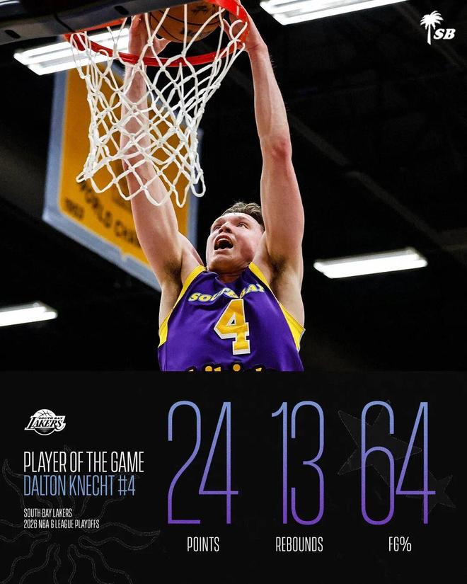 这场比赛不简单,是G联赛季后赛半决赛,南湾湖人由此成功晋级西决(目前已经在西决被斯托克顿国王淘汰出局)——发展联盟的季后赛规则不同于NBA,首轮、半决赛、分区决赛只打1场比赛,总决赛为三局两胜制。