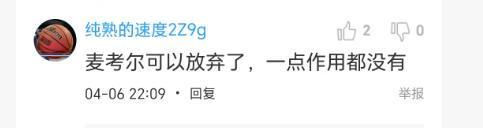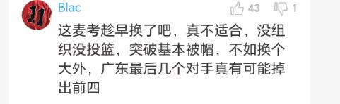麦考尔严重拖了广东队的后腿,第二阶段复出后,表现严重不如意,场均只得7.6分,真是太水了。球迷说,“麦考尔在场等于广东队4打5”、“受伤的麦考尔等来一个寂寞“、“麦考尔可以放弃了,一点作用都没有”、“这麦考趁早换了吧,真不适合,没组织没投篮,突破基本被帽,不如换个大外”。今天这场比赛再次验证明了麦考尔就是一人水货,真的不必要留他在球队了。你们说呢?