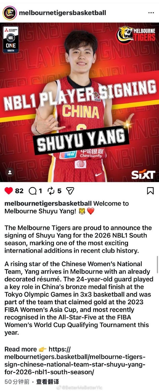 北京时间4月7日,中国女篮队长杨舒予在WCBA季后赛一轮游后,如今NBL1联赛墨尔本老虎女篮官宣,杨舒予加盟球队开启留洋之旅,无疑是效仿此前韩旭也征战过澳大利亚联赛的模式。