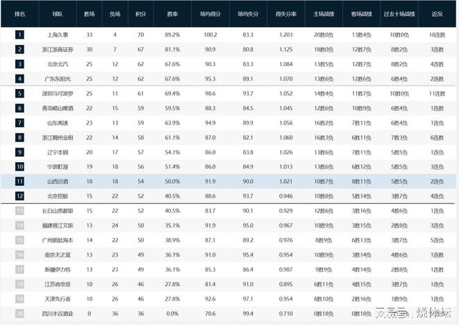 CBA排名榜