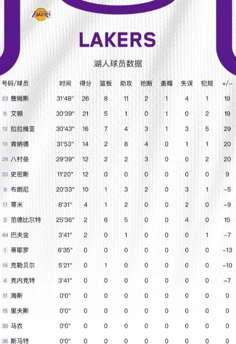 当双核驱动稳定运转,角色球员亦纷纷挺身而出。本场比赛湖人全员在线,人人皆可得分、人人敢于承担责任,真正打出团队篮球的精髓,也正是这份高度默契与集体投入,让湖人最终以16分优势轻松取胜。