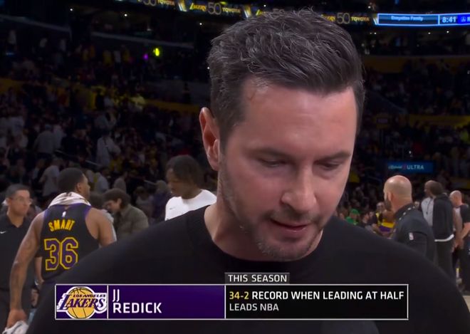 背靠背出战的詹姆斯,首节4中4,其中三分2投2中,还有双手暴扣的表现,单节14分,很难想象这是一位41岁的老将完成的事情。事实证明,只要给他球权,老詹依然是全面的得分手,在卢卡、小里在场的情况下,詹姆斯确实放权了。