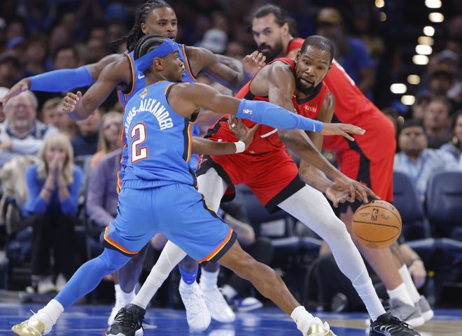 完整体的湖人也打不过雷霆,这是事实;火箭没控卫,虽然打任何球队都能五五开,但是末节崩盘率太高!到了季后赛,火箭因为无人控场,失误率会成倍增加,雷霆以逸待劳,恰好他们又是全联盟限制对手命中率+防守效率+逼迫对手出现失误最强的球队。列举几个关键数据就知道了,雷霆本赛季限制对手两分球命中率49%联盟第一,压制对手场均只进24.2个两分球,失误差值是-4.2,这全是联盟断档级别领先的水平。雷霆这一半区,谁能给雷霆压力?那也就意味着,和上赛季一样,雷霆基本就保底西决了。