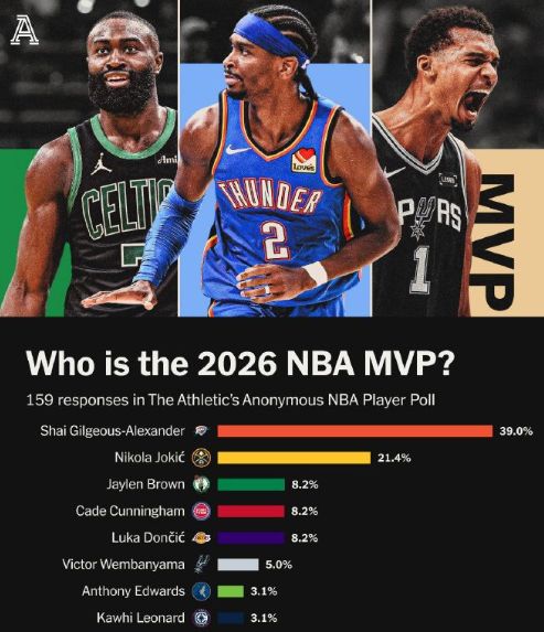 至于MVP,文班亚马虽然被官方排在MVP第一名,但亚历山大也是第一名的有力争夺者,从外网球员投票看,亚历山大断崖式领先,约基奇排名第二,文班甚至不能进入球员心中MVP前五名!
