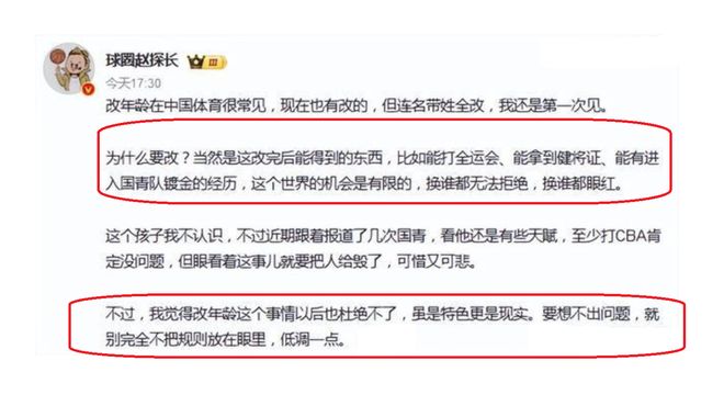 针对此事,篮球媒体人赵探长也是进行了点评,他表示改年龄在体育界,也是一件比较常见的事情,但是,现在连名带姓一起改,还是第一回见,十分罕见!