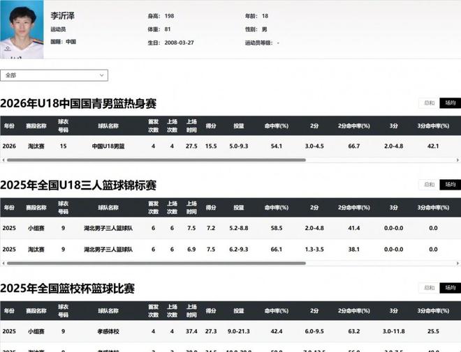 李沂泽作为U18中国男篮的核心球员,身高1米98,司职控球后卫,此前在热身赛中表现极为亮眼。就在4月10日对阵澳大利亚阿尔法篮球学院的比赛中,他还砍下20分9篮板7助攻的全面数据,展现出极强的个人能力和组织天赋。而在4月5日首战对阵加拿大皇冠高中的比赛中,他也贡献了18分,成为球队的得分核心。正因为他的出色表现,此次年龄造假的爆料才更让球迷感到震惊和失望。