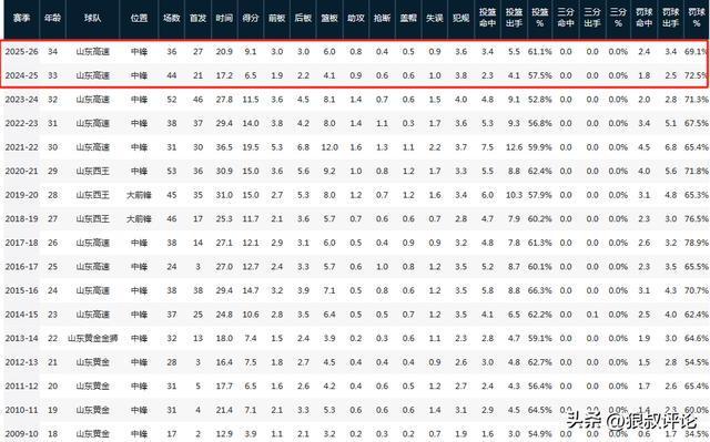 新赛季至今,陶汉林代表山东出战36场比赛,场均20.9分钟,得到9.1分6.0篮板,投篮命中率为61.1%。与上个赛季相比,整体数据稍微上涨,但与巅峰时期的场均19.5分12篮板,随着年龄的增长,比赛影响力下滑比较明显。