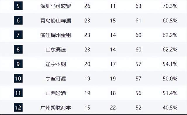 辽宁队20胜17负,排名第九,基本无缘前八。宁波队18胜18负,跌至第十,季后赛前景黯淡。山西队19胜18负位列第十一。