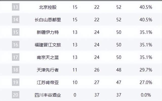 北京队遭遇重创,25胜13负排名第四,但已彻底失去冲击前三的可能。他们落后广东、深圳各1个胜场,且后续赛程艰难,反超希望渺茫。