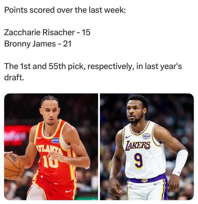 最讽刺的细节来自薪资表:里萨谢四年合同6300万,布朗尼四年790万。老鹰现在每场付状元19万看他打铁,湖人付布朗尼1.9万,还能把他下放到发展联盟当核武用。一位球探在TA的匿名访谈里说,"如果布朗尼去年去的是马刺或活塞,现在可能已经稳首发了。"