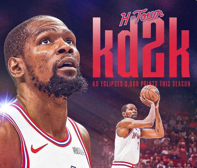 杜兰特加盟成火箭得分王