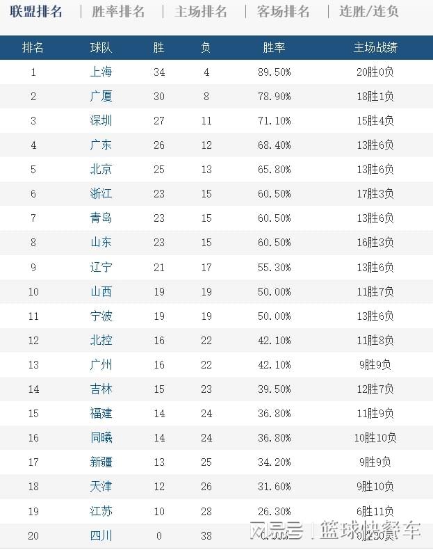 附:CBA积分榜最新排名