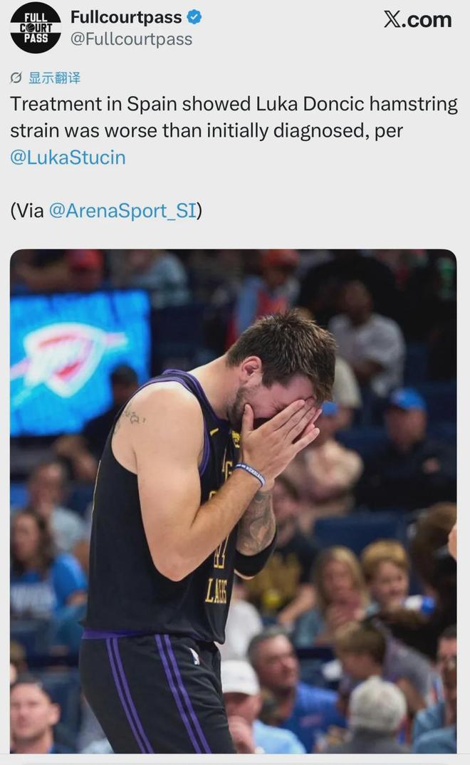 对了,湖人新招牌东契奇有新消息,即将返回洛杉矶与球队会合,同时带来一个坏消息,即他在西班牙接受治疗结果显示其的腿筋拉伤比最初诊断更为严重......