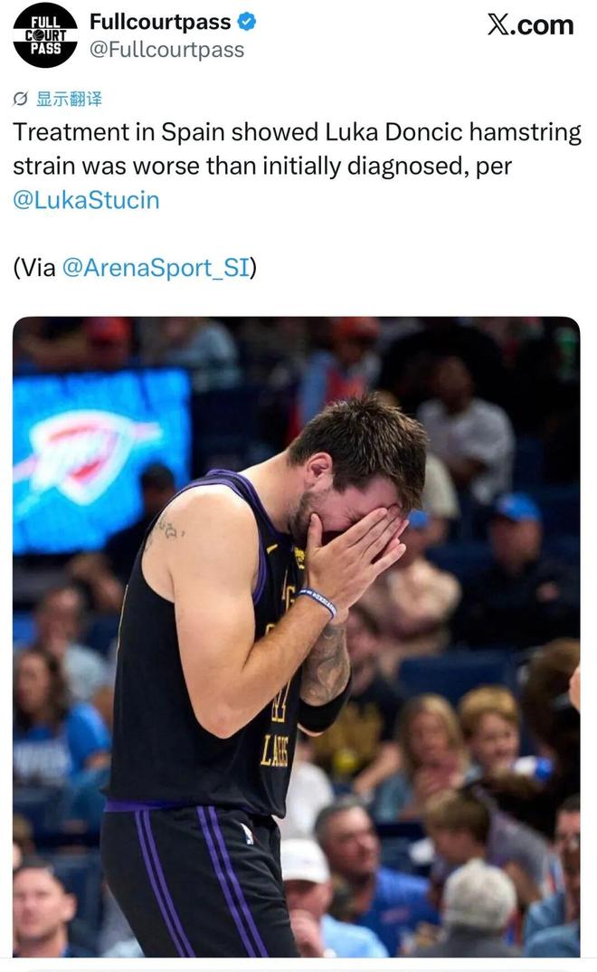 对了,湖人新招牌东契奇有新消息,即将返回洛杉矶与球队会合,同时带来一个坏消息,即他在西班牙接受治疗结果显示其的腿筋拉伤比最初诊断更为严重......