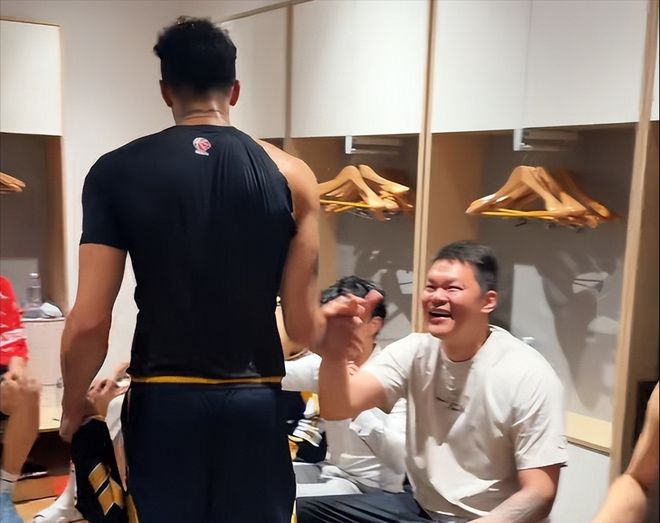 在艰难击败宁波的赛后,广东队更衣室内,刚刚经历了一番“冰火两重天”后,朱总的表情来了一个180°大转变,此时的他已经是笑得有些合不拢嘴了。