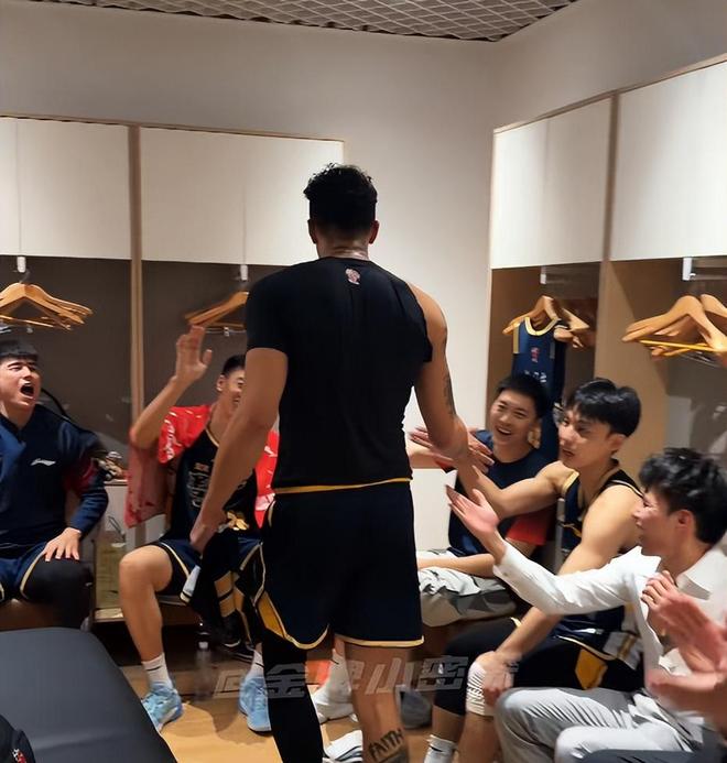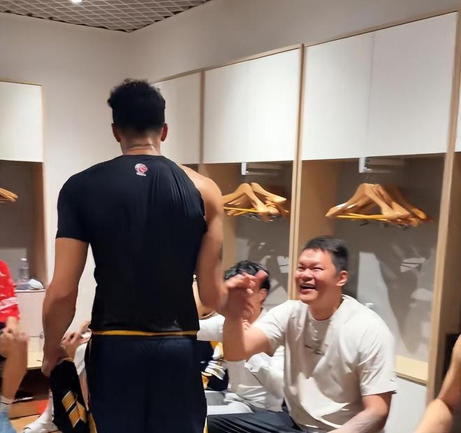 赢球赛后,关辛也是很罕见的一路跟拍徐杰走到了更衣室,拍下了广东球员在更衣室内击掌庆祝的欢快场面,广东队上下每个人都非常开心,朱芳雨更是笑得合不拢嘴(以前关辛很少会被允许进去更衣室拍摄视频)。