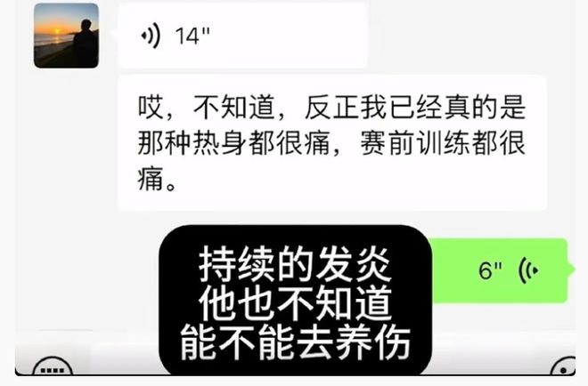 尽管广东队目前仍然是缺兵少将,困难重重,据知情博主晒出和胡明轩的聊天记录,胡明轩的膝盖一直在持续发炎,后面的比赛估计会继续轮休;