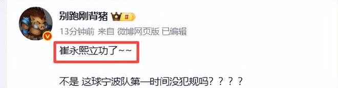 没错,他就是广东队的崔永熙。最后6秒广东队仅领先1分,宁波队杰克逊从徐杰手中抢得篮板并强起投篮,然而被高高跃起的崔永熙帽掉,让徐杰拿到球后被犯规打成2+1,最终锁定胜局。可以说最后6秒没有崔永熙这记死亡盖帽,宁波是一个必进球,广东队就会被准绝杀。崔永熙虽然全场只得4分3板,但是他的正负值是全队最高的+8,特别是如果没有他最后一次大帽,广东队就有可能佃掉比赛。所以说他这记大帽,堪称价值连城。媒体人麦穗丰大赞,“崔永熙非常非常非常精彩的封盖,简直是救命!”,别跑刚背猪赞:“崔永熙立功了!"球迷夸:崔永熙拯救了广东队!