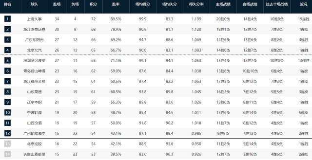 从积分榜的格局来看,已经有11支球队提前锁定了季后赛席位,最后一个位置将会在广州、北控、吉林三支球队之间产生,最后四轮比赛对于这三支球队来说将会是非常现实和残酷,谁能够多赢一场就能够占据绝对的主动权,相反,如果持续输球将会直接退出季后赛的争夺战。