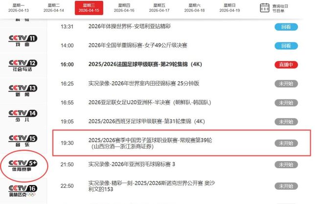 4月15日19点35分,CCTV5+全程高清直播山西男篮对阵浙江广厦的巅峰对决——这不是一场寻常的常规赛收官战,而是潘江执教生涯中至关重要的“命运突围战”。