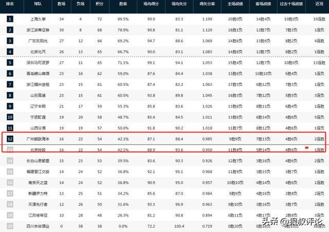 北控与广州龙狮目前常规赛战绩、相互胜负关系、排名赛积分均相同,双方需要比较相互得失分确定排名,广州两场比赛净胜北控28分,因此排名在前,北控也就此失去了同分身位优势,需要胜场超过广州才能实现排名超车。