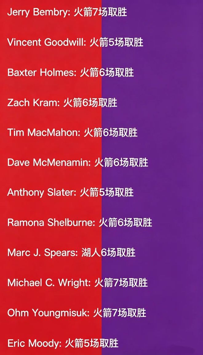 今天看到ESPN专家团刚出的预测,这结果,直接给湖人判了“死缓”——12个人里11个押火箭晋级,就一个人敢站湖人。