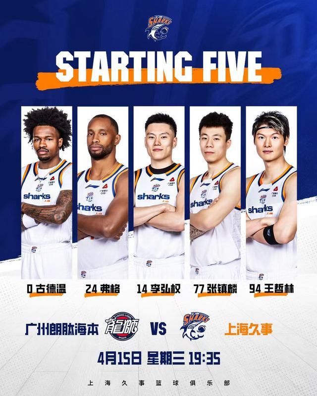 本场比赛,大鲨鱼内线外援怀特塞德和洛夫顿依旧因伤缺阵,王哲林、张镇麟、李弘权和双外援弗格、古德温组成先发阵容。