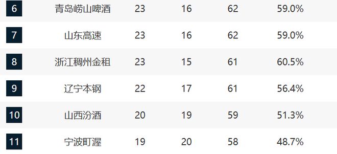 至于6-8分别是青岛、山东和浙江。而这轮浙江对阵的是吉林,如果他们取胜的话,那么他们领先青岛与山东1个胜场,排在第6,这场比赛正常打他们还是有希望取胜的。至于青岛和山东他们都输球了,特别是山东后续三场都是强队,他们的排名可能会继续下滑。