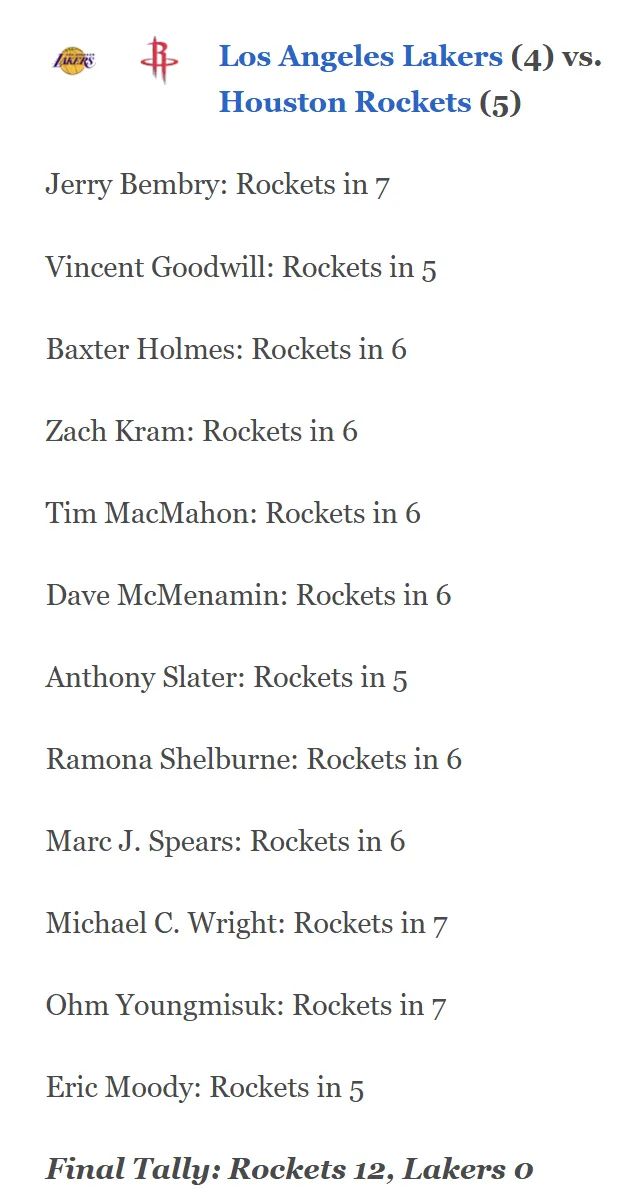 虽然ESPN12位专家都看好火箭,但单核的勒布朗或许能迸发出巨大的能量,参考2018詹。