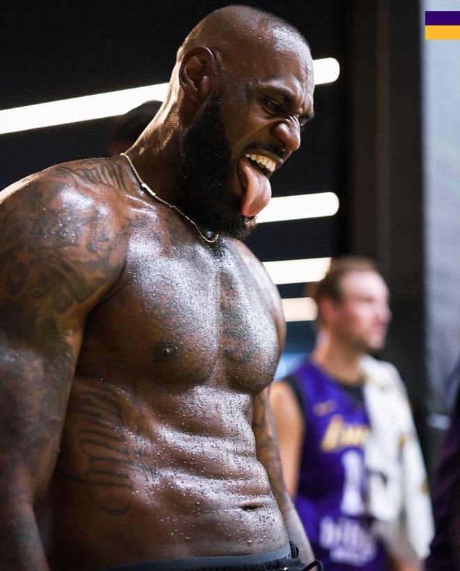 大家可以看到41岁的勒布朗身材依旧炸裂,他作为一个老头子还是有八块腹肌,在训练后他脖子上青筋暴露,老詹的胸肌、肱二头肌都非常明显,勒布朗在训练时的兴奋度也在,放眼世界体坛在这个年龄还能保持这个身材、自律度、竞技状态的可能也只有C罗与勒布朗了。