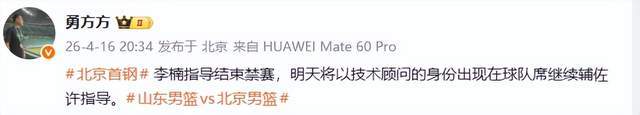 李楠在禁赛期间保持低调,未公开参与任何篮球事务。如今禁赛期满,其以“技术顾问”身份回归,不担任主教练,而是通过经验输出协助球队战术体系优化,体现俱乐部对其专业能力的认可,也传递出“惩戒与回归并行”的管理态度。