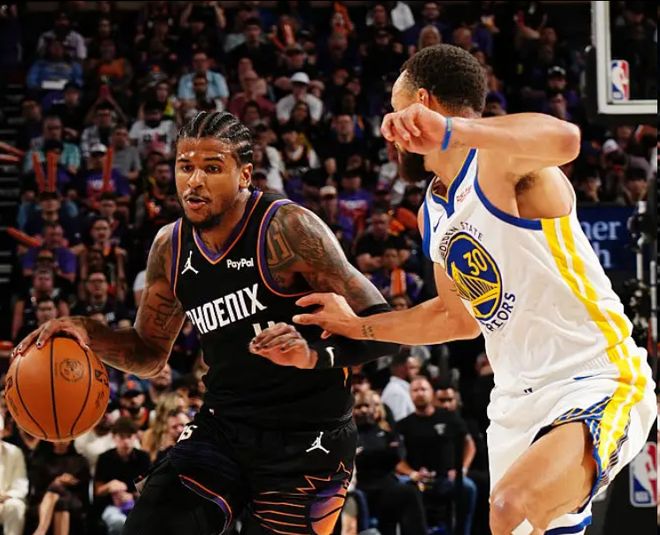 北京时间4月18日,在NBA附加赛中,菲尼克斯太阳以111-96击败金州勇士。此役,杰伦-格林出战40分钟,他20投14中,三分球14投8中,砍下36分6篮板4助攻2抢断3盖帽,正负值+22。
