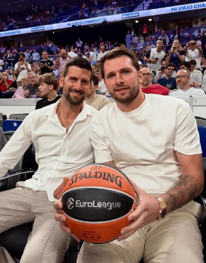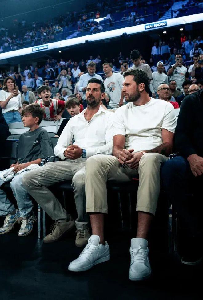 今天,媒体报道东契奇和网坛球星德约科维奇,一起马德里现场观看皇家马德里与贝尔格莱德红星之间的欧冠篮球常规赛。
