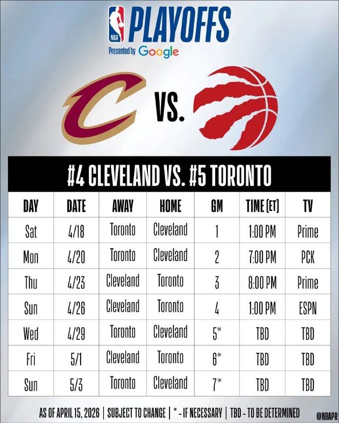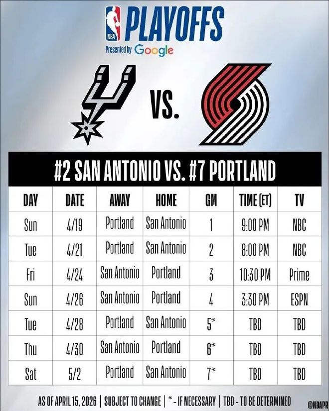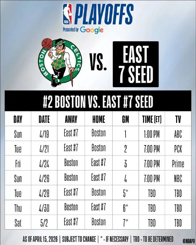 我们看看季后赛的赛程安排