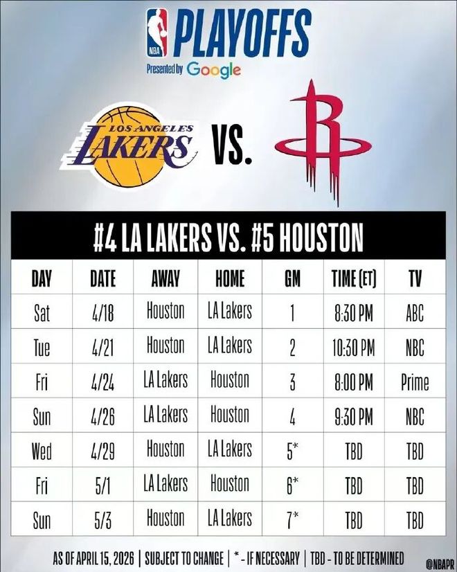 湖人火箭的赛程是这样的