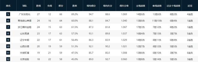 那么,山东队的排名会不会进一步跌至第10位?答案是否定的。目前排名第10位的山西队战绩为20胜19负,与山东队存在3个胜场的差距。即便山东队最后两场全败,而山西队最后3场全部取胜,后者也无法实现反超。本赛季山东队与山西队的两次对决同样是一胜一负,但山东队在小分上拥有4分的优势,即便两队最终常规赛战绩相同,山东队的排名也会更靠前。
